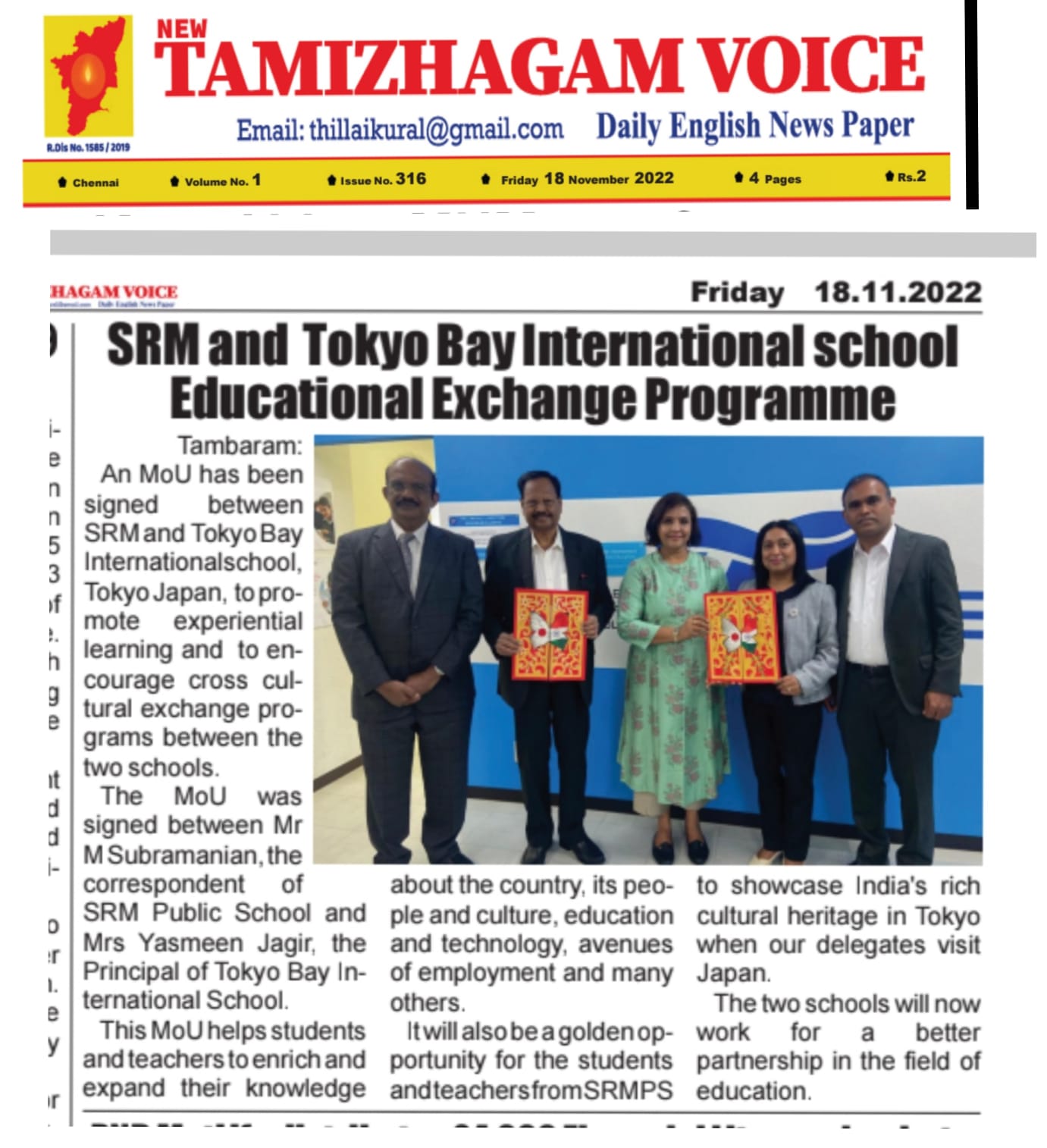 Srm And Tokyo Bay International School Educational Exchange Programme